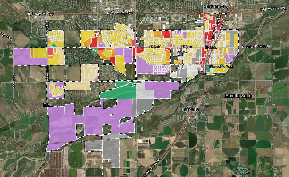 The Official Zoning Map is adopted by the City Council per Chapter 1.20 of the Evans Municipal Code.