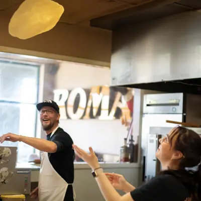 In fact, Ball met his wife, Becky, at Roma back in 2004. The couple now have two sons: Jacob (15) and Matthew (10). One day, Jacob was working at Roma when he was on a break from school. After watching his dad laugh and interact jovially with customers and employees, Jacob said “Geez dad – I wish you were this nice at home!” Younger son Matthew also chips in by helping mix dough and roll it into balls.