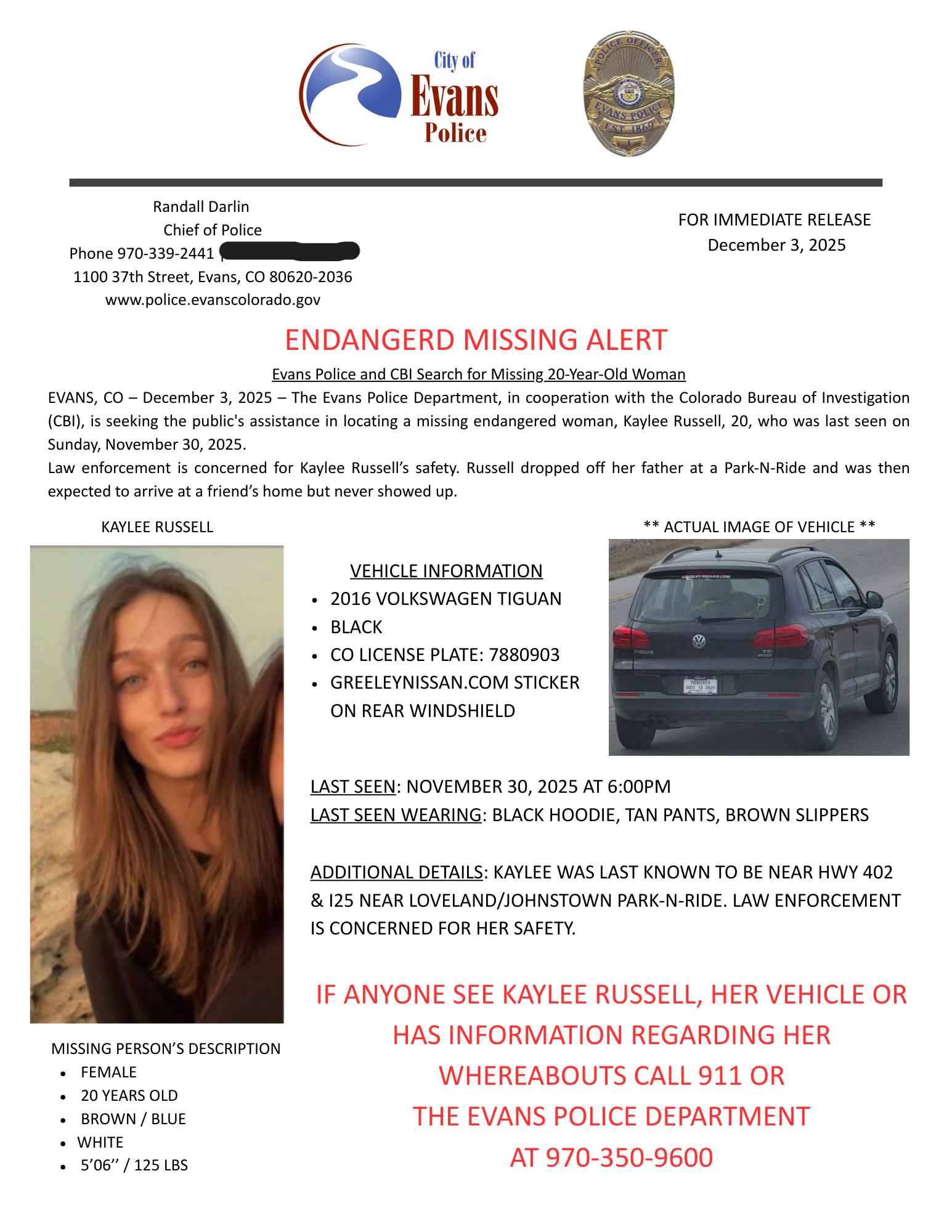 Evans PD Requesting Help to Locate Missing Woman