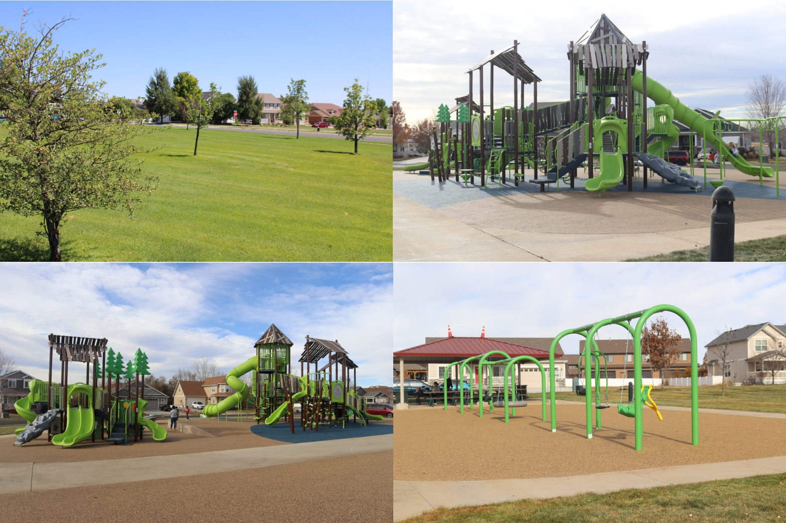 | Description: | This park is located adjacent to Prairie View Drive and includes a picnic pavilion, restrooms, basketball court, playground, and soccer field. As of September 2025, the park is undergoing some renovations to the landscaping. This park also has Evans’ first skate park, located next to the park pavilion. |